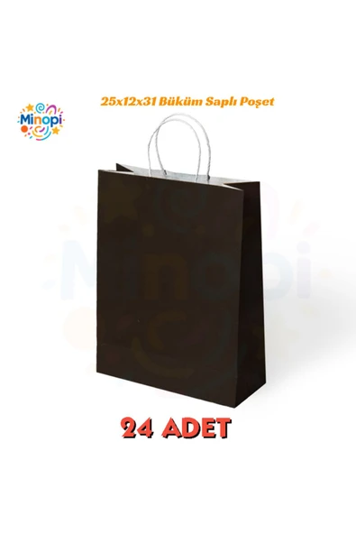 Minopi 24 Adet Büküm Saplı Siyah Çanta 25x12x31 cm Kağıt Çanta