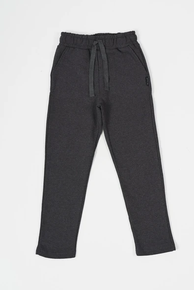 Antrasit Kalın Pamuklu Beli ve Paçası Lastikli Cepli 5-6-7-8-9-10-11-12 Yaş Erkek Çocuk Eşofman Altı MTLCC99-Antrasit