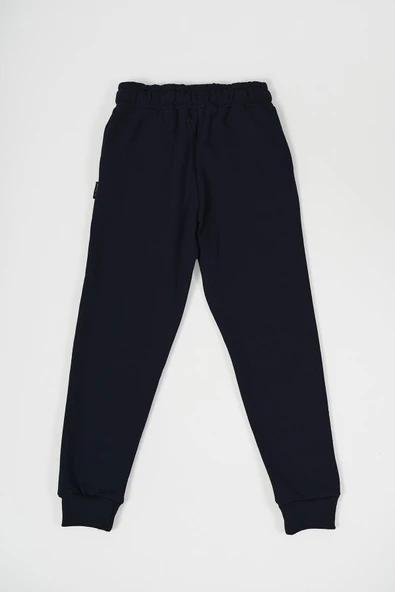 Lacivert Kalın Pamuklu Beli ve Paçası Lastikli Cepli 5-6-7-8-9-10-11-12 Yaş Kız Çocuk Eşofman Altı