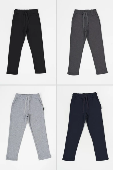 Siyah-Lacivert-Gri-Antrasit Kalın Pamuklu Beli Lastikli Yan Cepli 4'lü Erkek Çocuk Eşofman Altı MTLCC98-4