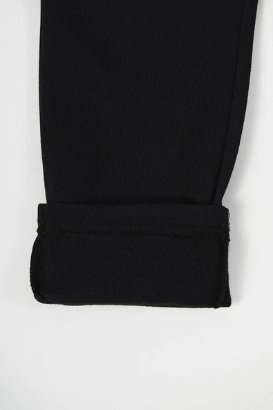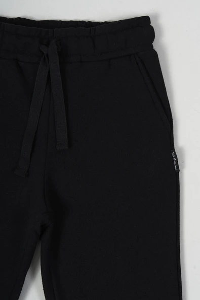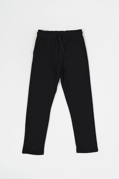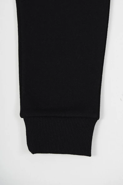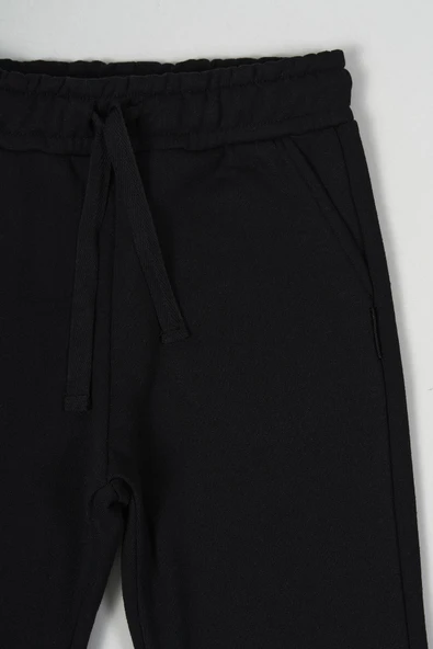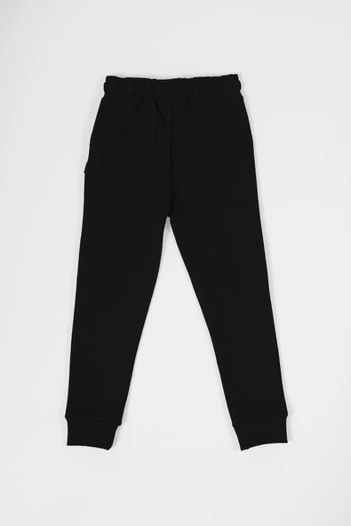 Siyah Kalın Pamuklu Beli Lastikli Yan Cepli 5-6-7-8-9-10-11-12 Yaş Erkek Çocuk Eşofman Altı