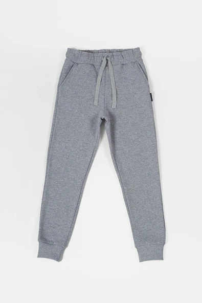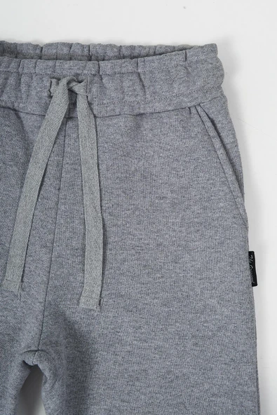 Gri Kalın Pamuklu Beli Lastikli Yan Cepli 5-6-7-8-9-10-11-12 Yaş Erkek Çocuk Eşofman Altı