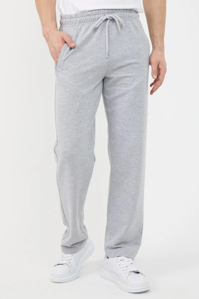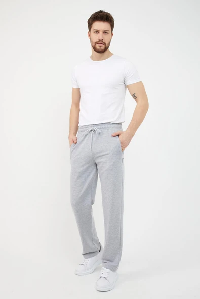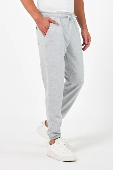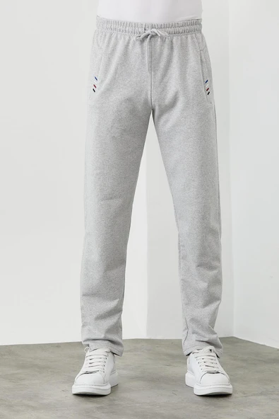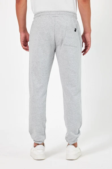 Gri Erkek Eşofman Altı Etiketli Arka ve Yan Cepli Regular Fit Lastik Paça
