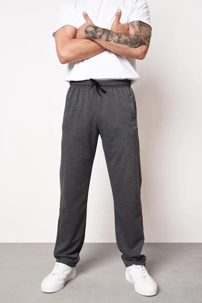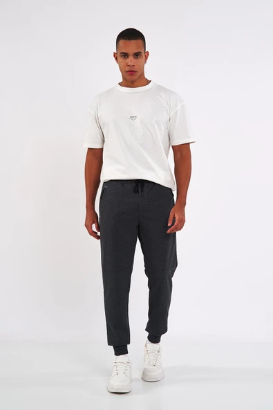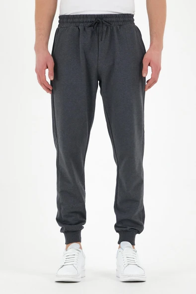 Erkek Antrasit Standart Fit Normal Kesim Paça Ribanalı Cepli Rahat Jogger Eşofman Altı MTLCE101