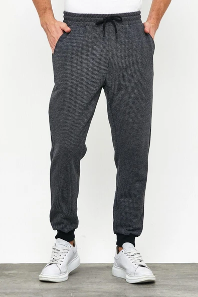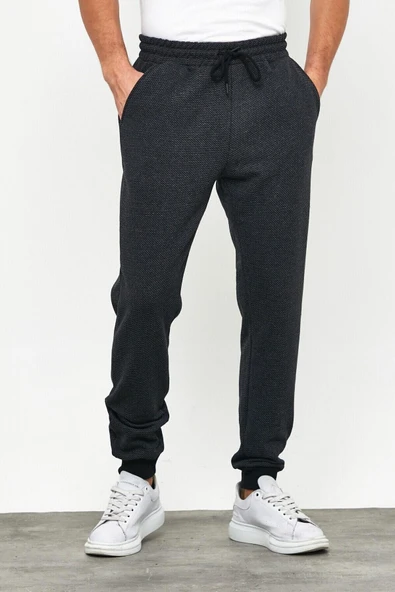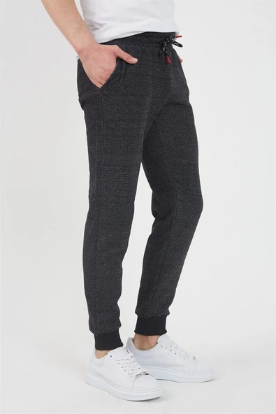 Kalın Antrasit Erkek Eşofman Altı Jogger Arka Cepli Paça Lastikli Regular Fit Şardonsuz