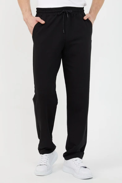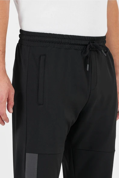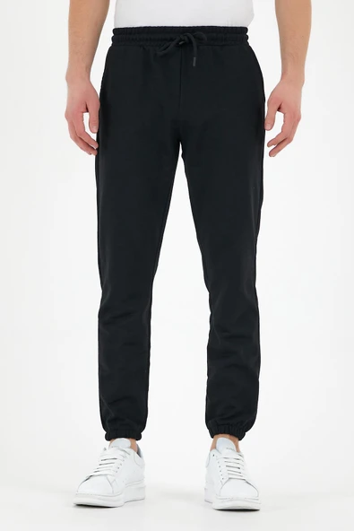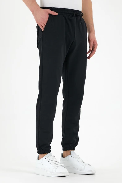 Siyah Erkek Eşofman Altı Etiketli Arka ve Yan Cepli Regular Fit Lastik Paça