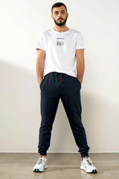 Lacivert Erkek Eşofman Altı Etiketli Arka ve Yan Cepli Regular Fit Lastik Paça