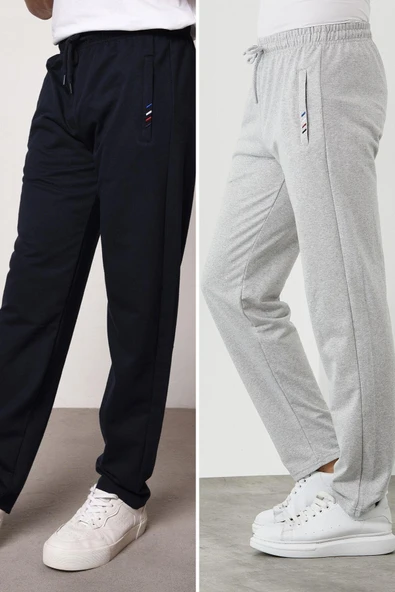 Siyah-Gri 2'li Erkek Eşofman Altı Etiketli Arka ve Yan Cepli Regular Fit Lastik Paça