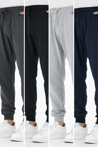 Sİyah-Lacivert-Gri-Antrasit Erkek Paçası Lastikli 4'lü Eşofman Altı