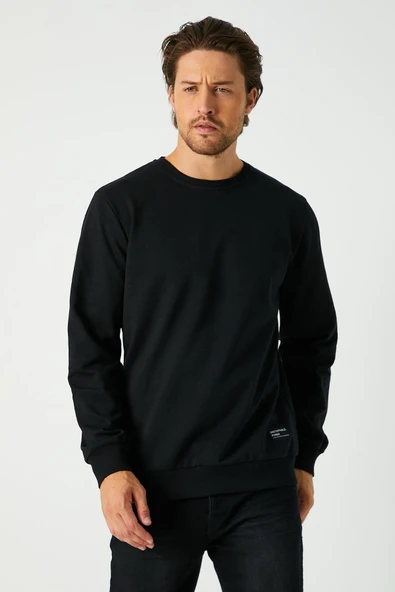 Siyah Relaxed Fit Bisiklet Yaka Sweatshirt Düz Paça Erkek Eşofman Takımı