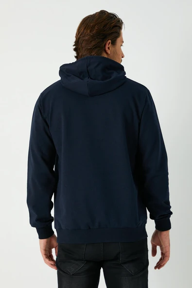 Lacivert Regular Fit Kapüşonlu Cepli Sweatshirt Düz Paça Erkek Eşofman Takımı