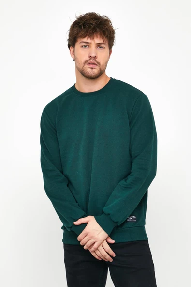 Erkek Koyu Yeşil Basic Bisiklet Yaka Sweatshirt