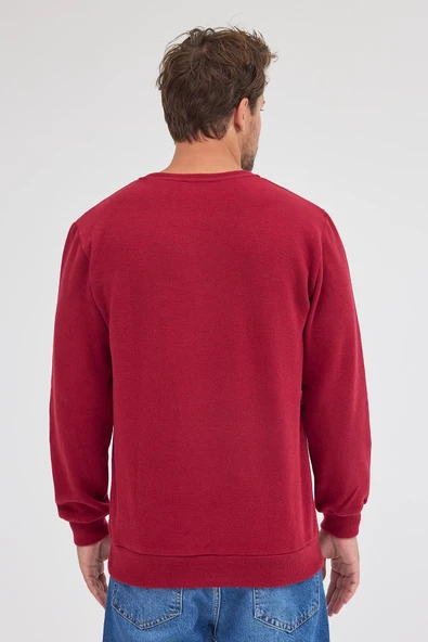 Erkek Bordo Standart Fit Normal Kesim Pamuklu Basic Bisiklet Yaka Sweatshirt MTLCE113-Bordo