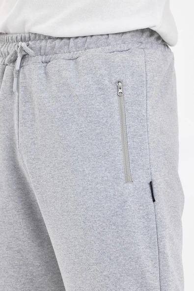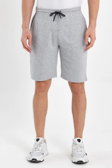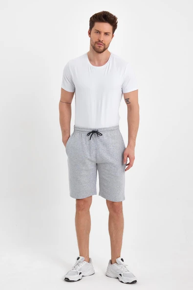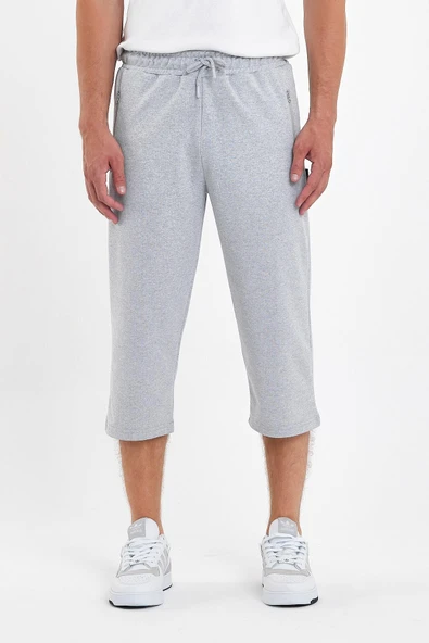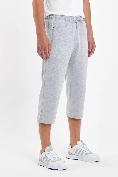 Erkek Cepleri Fermuarlı Gri Bermuda Diz Altı Kapri Beli Ayarlanabilir Lastikli Uzun Şort