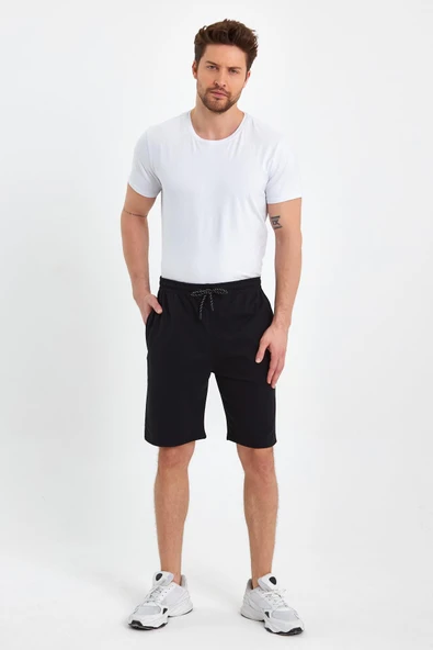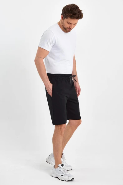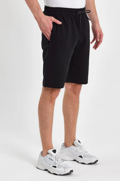 Erkek Siyah Şort - Yan Cepli Beli Lastikli Regular Fit Rahat Kesim
