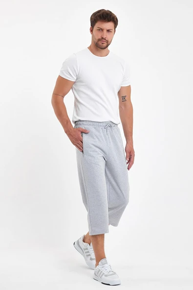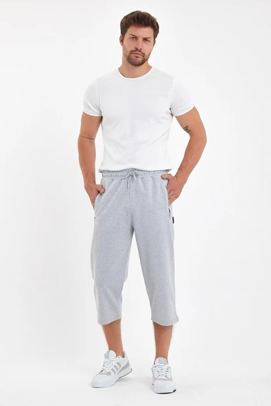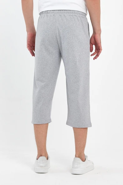 Erkek Yanları Cepli Gri Bermuda Diz Altı Kapri Beli Ayarlanabilir Lastikli Uzun Şort MTLCE108