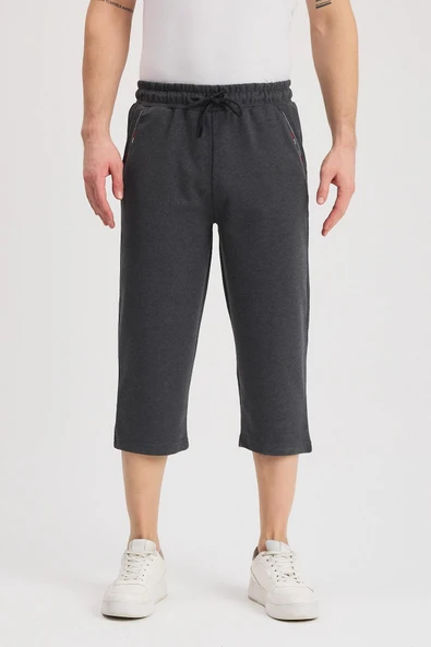 Erkek Cepleri Fermuarlı Antrasit Bermuda Diz Altı Kapri Beli Ayarlanabilir Lastikli Uzun Şort