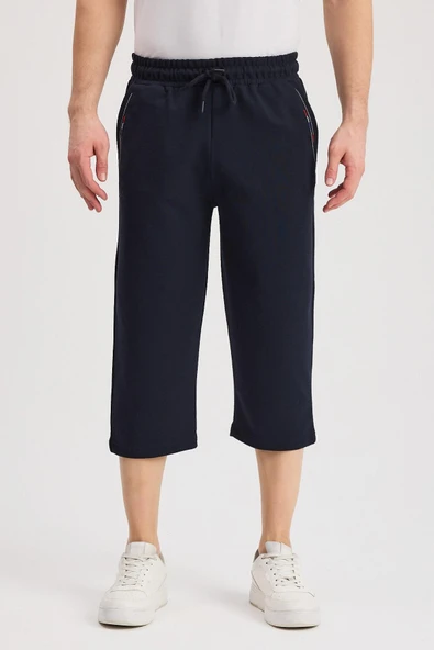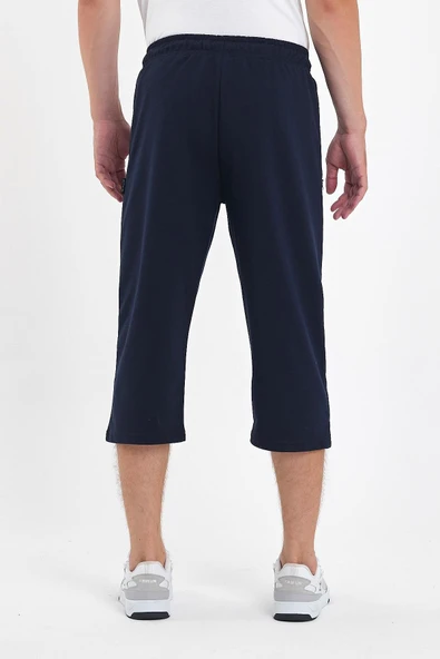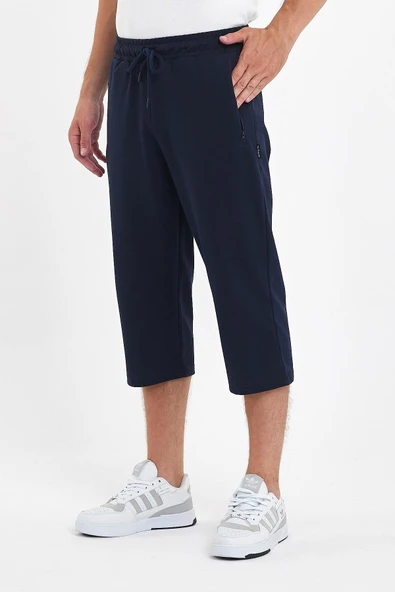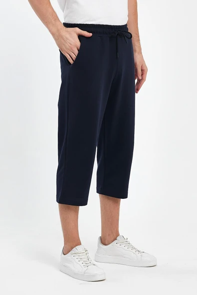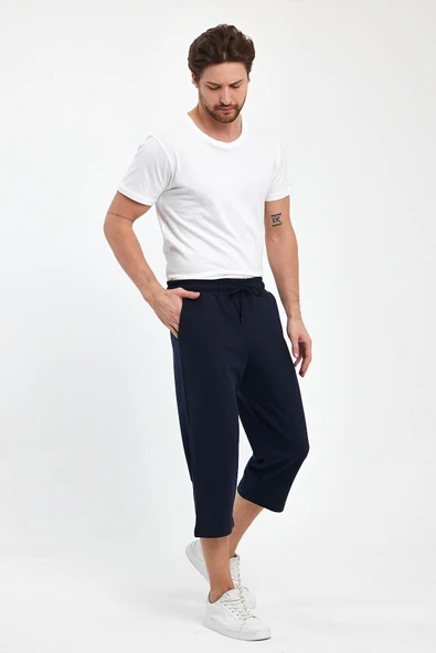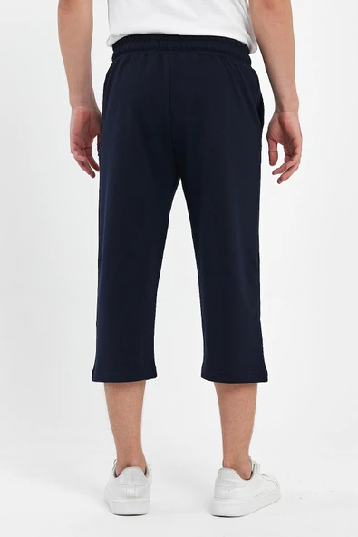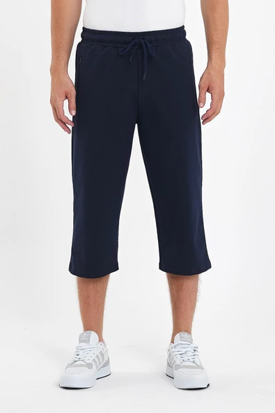 Erkek Yanları Cepli Lacivert Bermuda Diz Altı Kapri Beli Ayarlanabilir Lastikli Uzun Şort MTLCE108