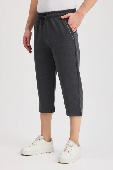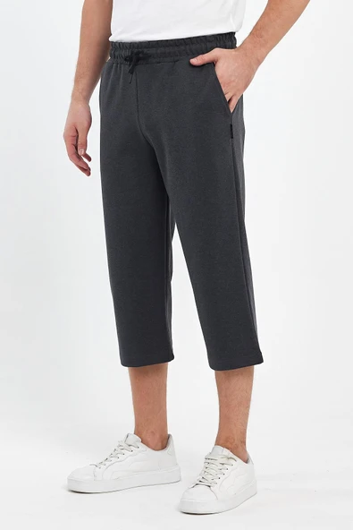 Erkek Yanları Cepli Antrasit Bermuda Diz Altı Kapri Beli Ayarlanabilir Lastikli Uzun Şort MTLCE74