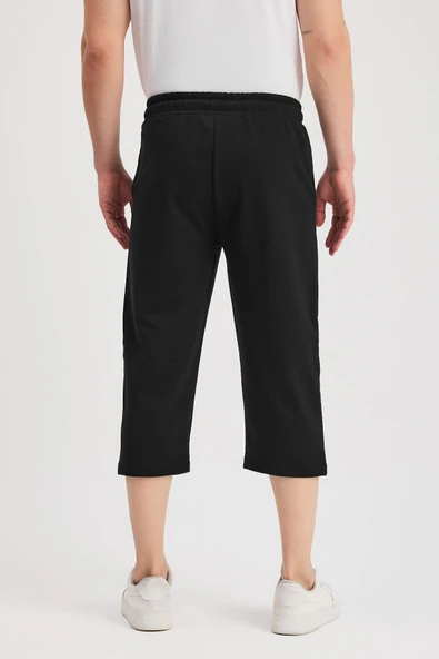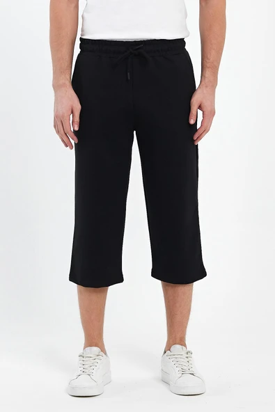 Erkek Yanları Cepli Siyah Bermuda Diz Altı Kapri Beli Ayarlanabilir Lastikli Uzun Şort MTLCE108