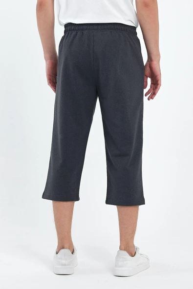 Erkek Yanları Cepli Antrasit Bermuda Diz Altı Kapri Beli Ayarlanabilir Lastikli Uzun Şort MTLCE108