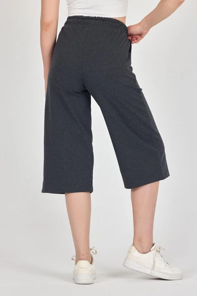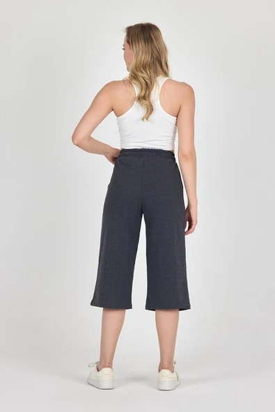 Yüksek Bel Cepli Rahat Kesim Mevsimlik Kadın Diz Altı Bermuda Füme Kapri Şort