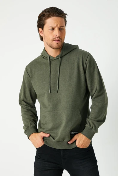 Haki Erkek Kapüşonlu Kanguru Cepli Sweatshirt