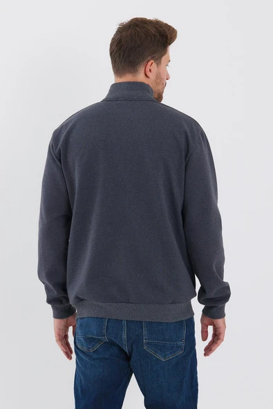 İçi Pamuklu Fermuarlı Dik Yan Cepli Erkek Antrasit Hırka