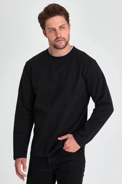 Erkek Siyah Çift Bisiklet Yaka Standart Rahat Kesim Sweatshirt MTLCE68-SİYAH