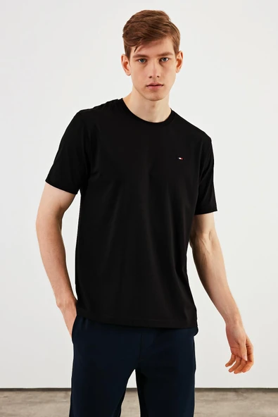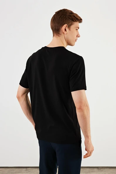 Erkek Bisiklet Yaka T-shirt %100 Pamuk Nakış Detaylı Basic Siyah Tişört MTLCE89
