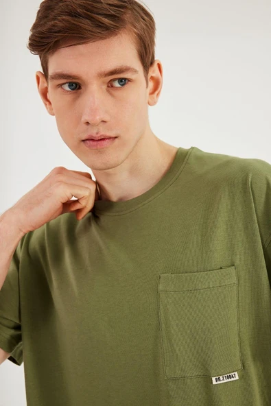 Leo Erkek Oversize Tshirt %100 Pamuk Cep Detaylı Bisiklet Yaka Basic Tişört MTLCE75