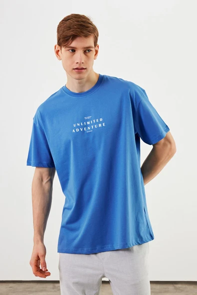 Leo Erkek Oversize Tshirt %100 Pamuk Bisiklet Yaka Baskı Detaylı Basic Tişört MTLCE82