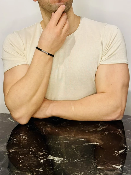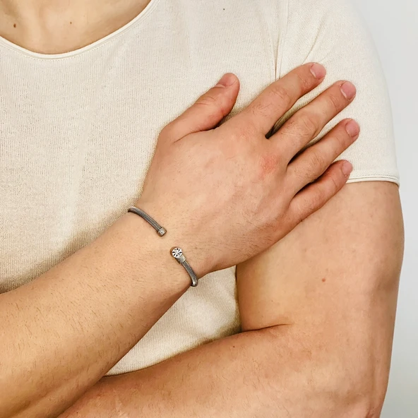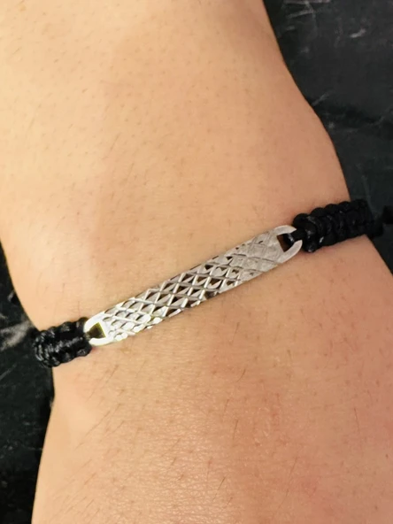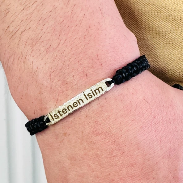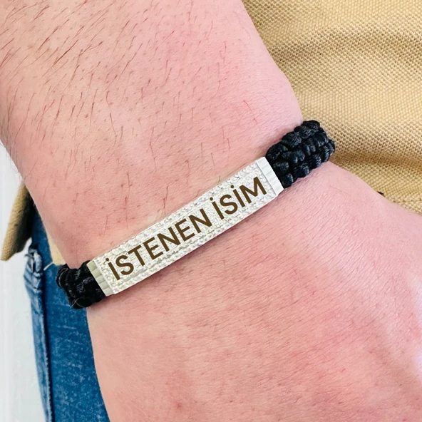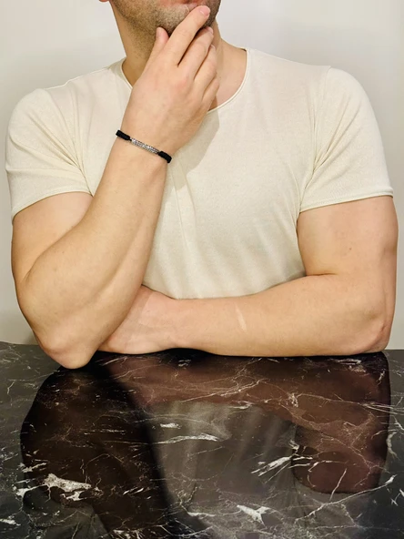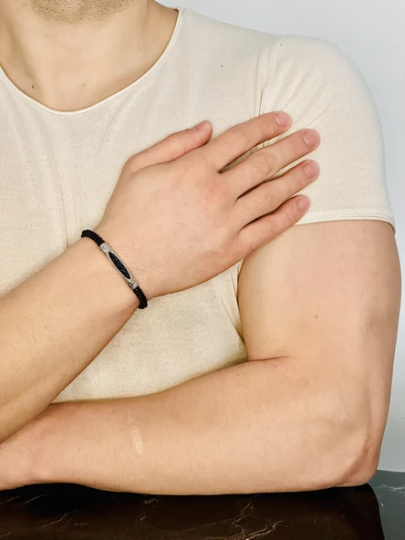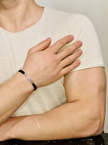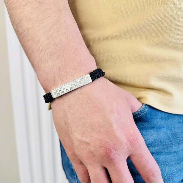 Deri Örgü Erkek Bileklik, Özel Gravür Desen Özel Tasarım Bileklik