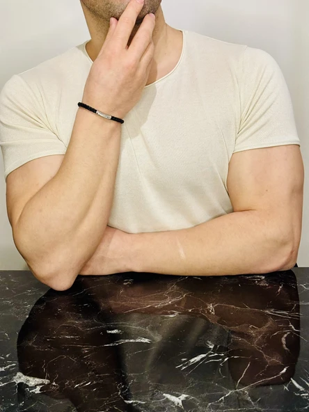 Gümüş Erkek Bileklik ,0.15 Karat Doğal Beyaz Safir Taşlı,Şık Tasarım,Kararmaz Çelik Bant