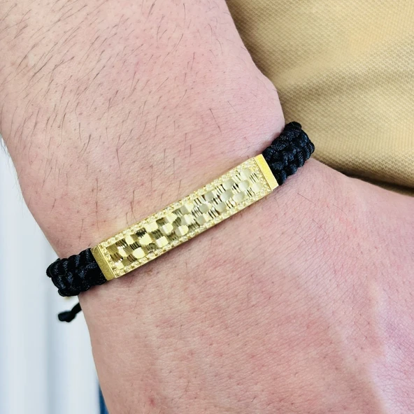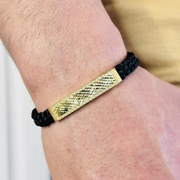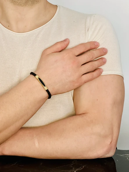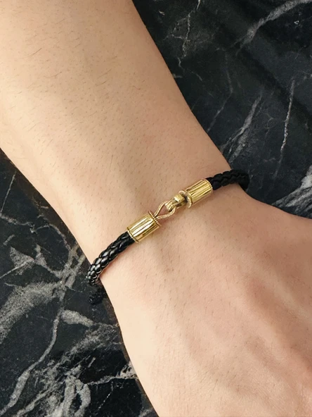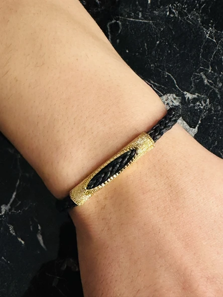 Erkek Bileklik, Deri Ip Örme Altın Kaplama Özel Tasarım Bileklik, Şık Hediye