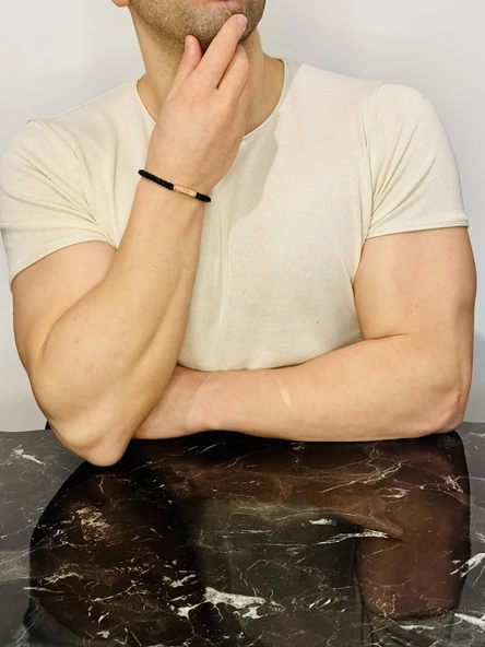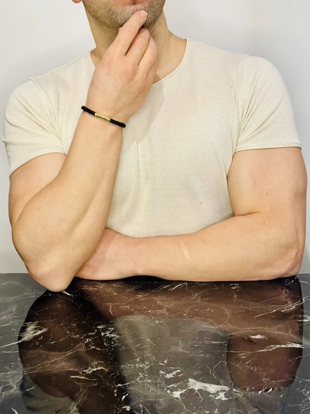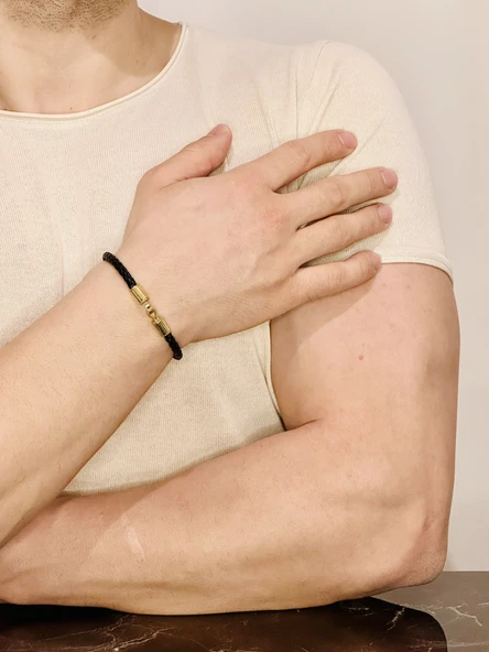 ERKEK BİLEKLİK, DERİ İP ÖRME ALTIN KAPLAMA ÖZEL TASARIM BİLEKLİK, ŞIK HEDİYE
