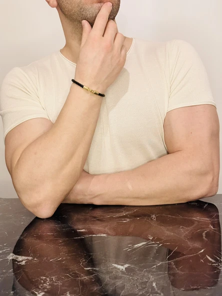Erkek Bileklik, Özel Tasarım Kalem İşlemeli Altın Kaplama Şık ve Anlamlı Hediye