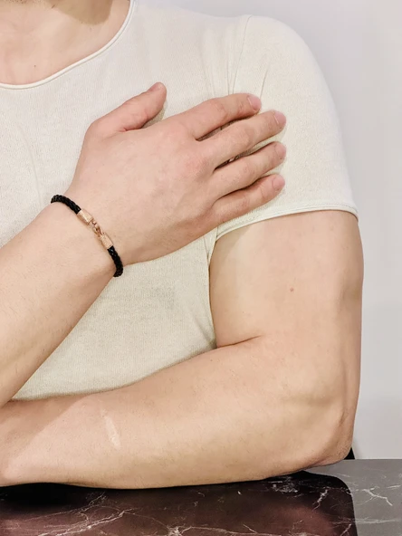 Gümüş Erkek Bileklik,14k Rose Altın Kaplama, Şık Hediye