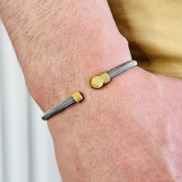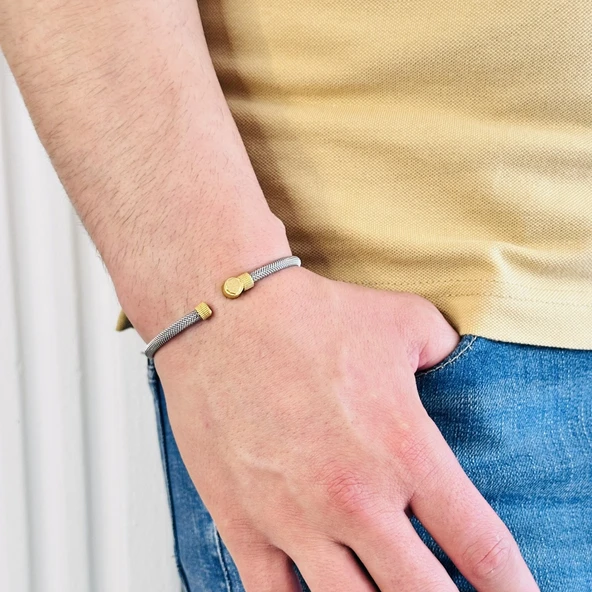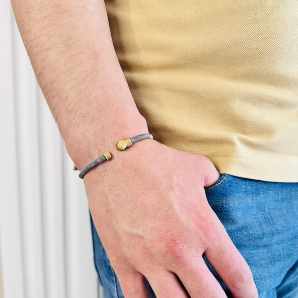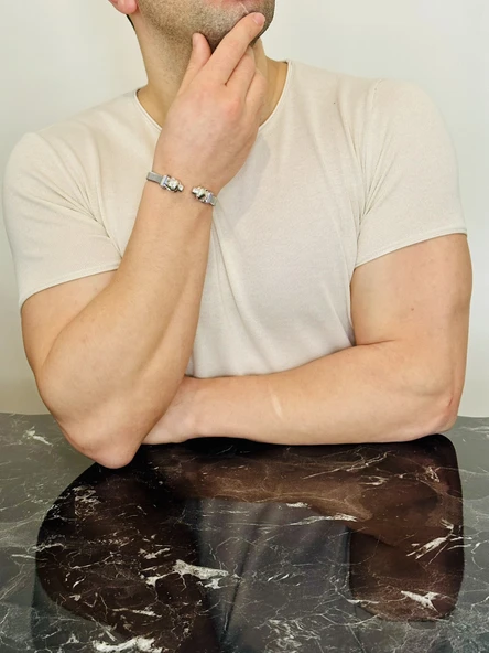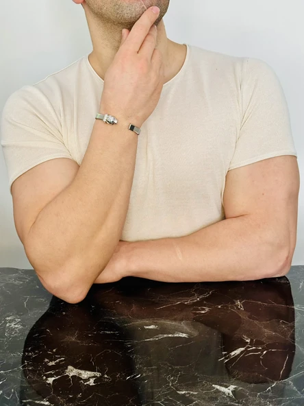 Erkek Bileklik, Gümüş Altın Kaplama Özel Tasarım Bileklik, Şık Hediye