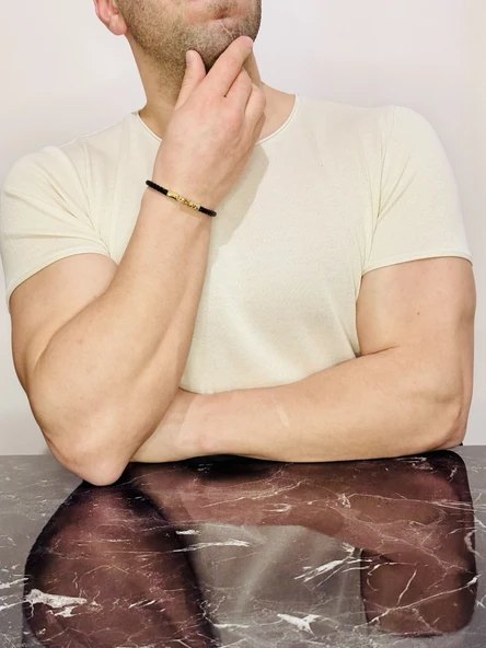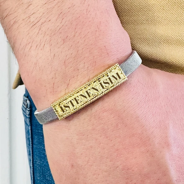 Gümüş Erkek Bileklik,14k Altın Kaplama ,sim Desen Isim Yazılabilir,şık Hediye