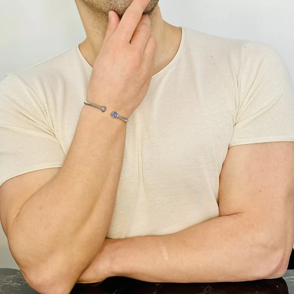 Gümüş Erkek Bileklik,0.60 Karat Safir Bileklik Özel Tasarım,Şık Hediye
