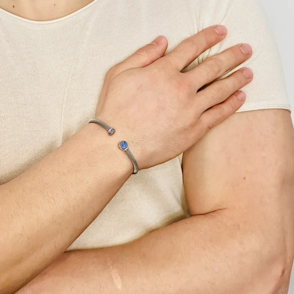 Gümüş Erkek Bileklik , 0.15 Karat Doğal Safir Taşlı,Şık Tasarım,Kararmaz Çelik Bant