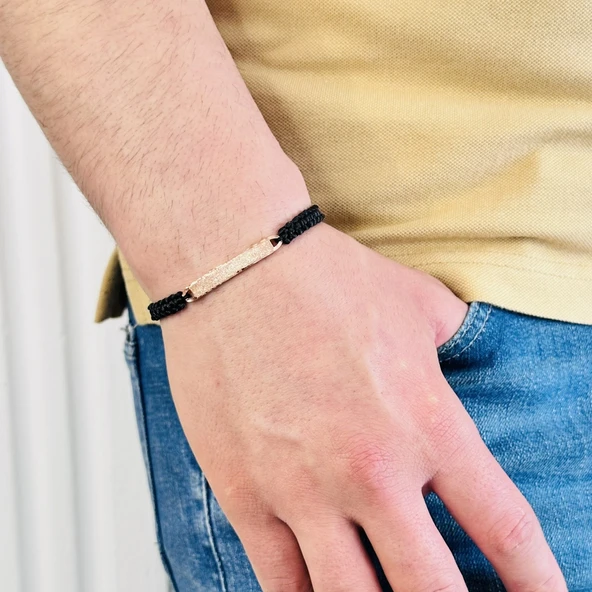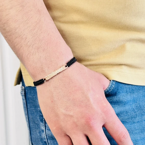 Gümüş Erkek Bileklik 14 Ayar Rose, Altın Kaplama, El Örgüsü Şık ve Yazı Yazılabilir Modern Tasarım
