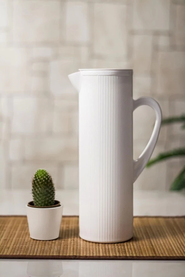Akrilik Barok 1,5 Lt Beyaz Sürahi (Buzdolabı Kapak Rafına Sığar)
