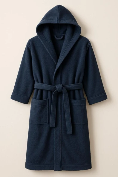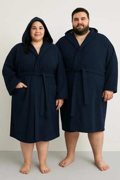 Pamuklu kapşonlu lacivert Renkli (L-XL-2XL-3XL-4XL-5xl-6xl) Büyük / Battal Beden Bornoz