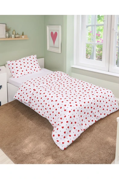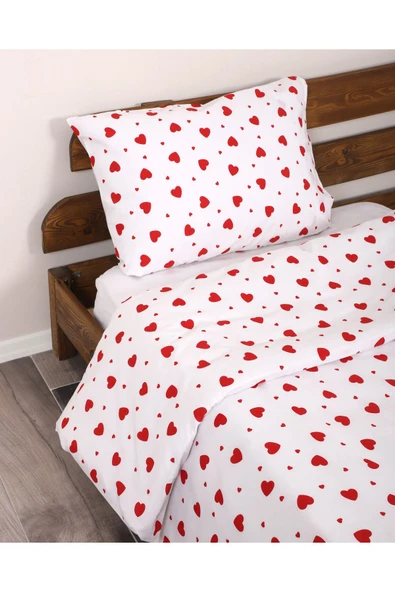 MODELHOME Tek Kişilik Nevresim Seti | Kırmızı Kalpli Nevresim Seti |Nevresim+ 1 Adet Yastık Kılıfı |