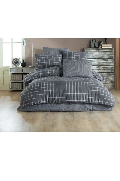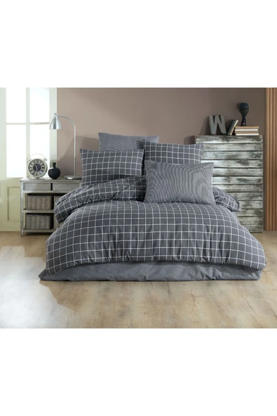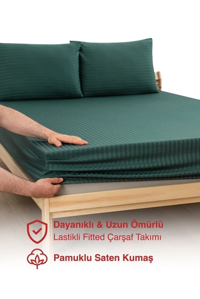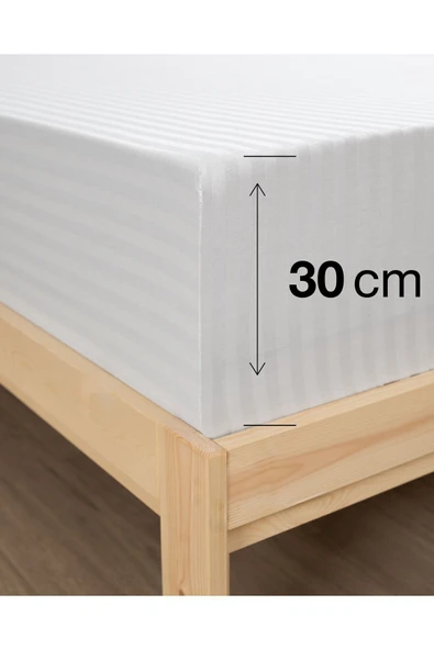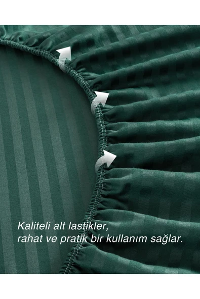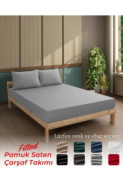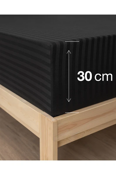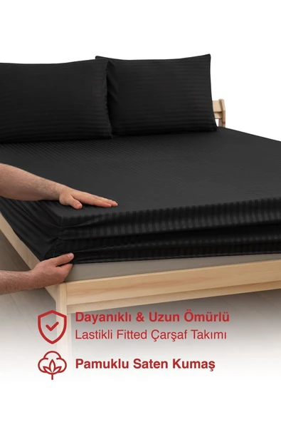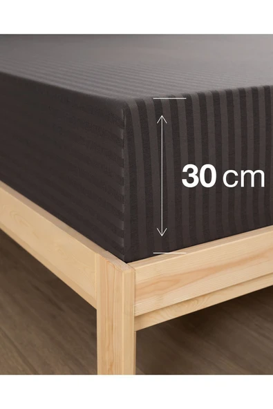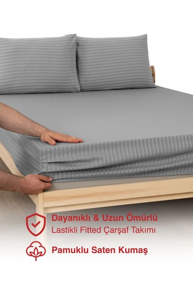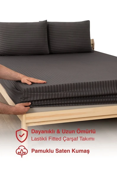 MODELHOME Antrasit Renkli, Çift Kişilik Pamuklu Çizgili Saten Lastikli Çarşaf Takımı