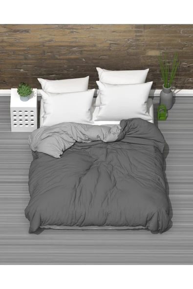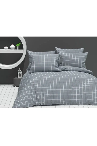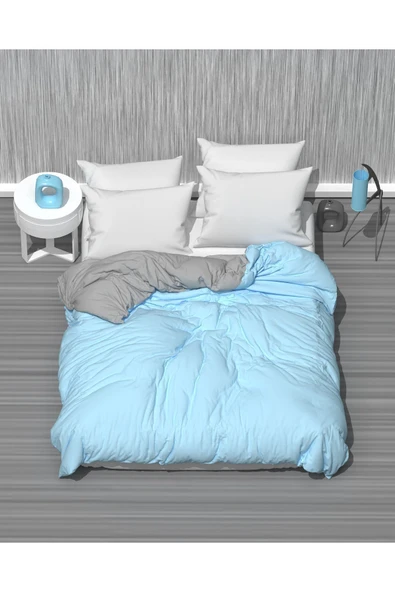 MODELHOME Çift Kişilik İki Renkli (Mavi - Gri ) Pamuklu Ranforce Kumaş Nevresim, Yorgan Kılıfı (200 x 230 cm)