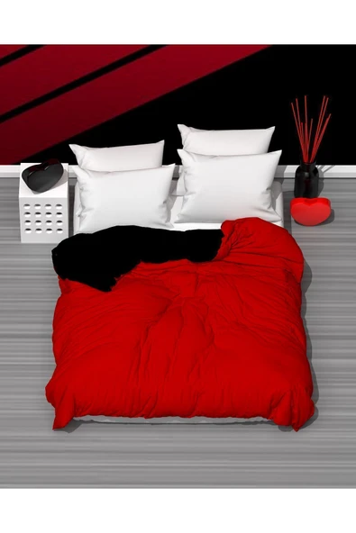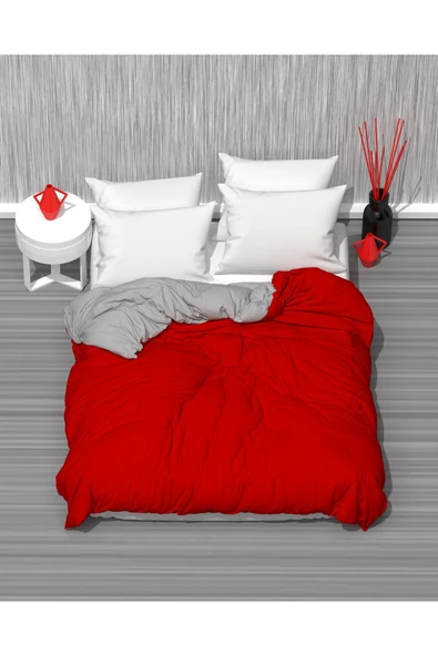 MODELHOME ift Kişilik Nevresim Seti | Kırmızı Kalpli Nevresim Seti |Nevresim+ 2 Adet Yastık Kılıfı |