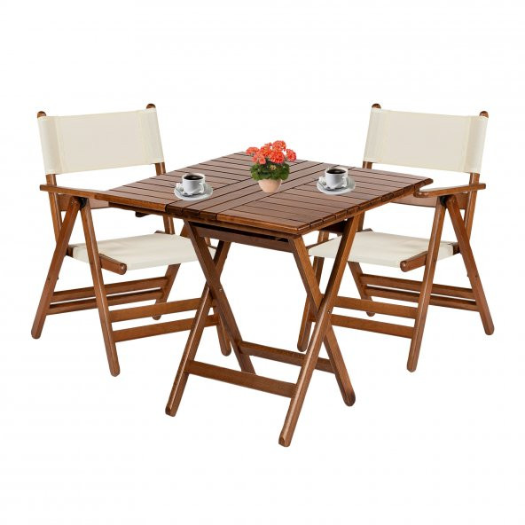 Yönetmen Ahşap Bahçe Balkon Seti: 70x70 Masa + 2 Sandalye - Katlanır Takım
